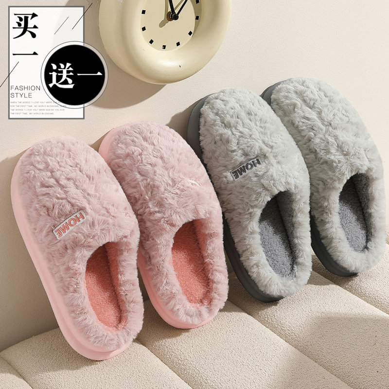 买一送一情侣棉拖鞋女款冬季室内家居一对保暖防滑防臭厚底棉拖男