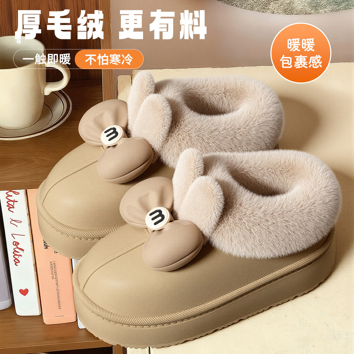 可爱毛绒棉拖鞋女款冬季2025新款防水保暖厚底包跟防滑棉拖鞋女士