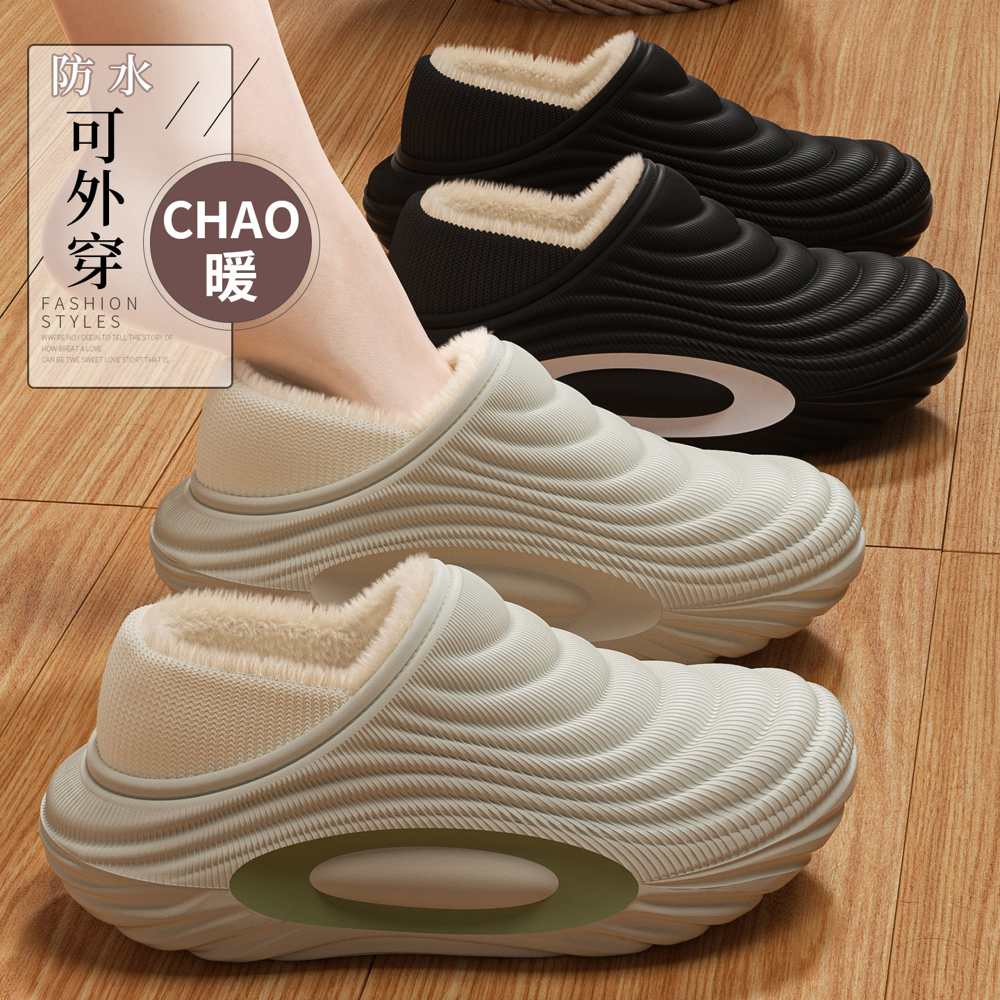 防水棉拖鞋男款加厚冬季外穿2025新款包跟保暖加绒厚底情侣棉鞋女