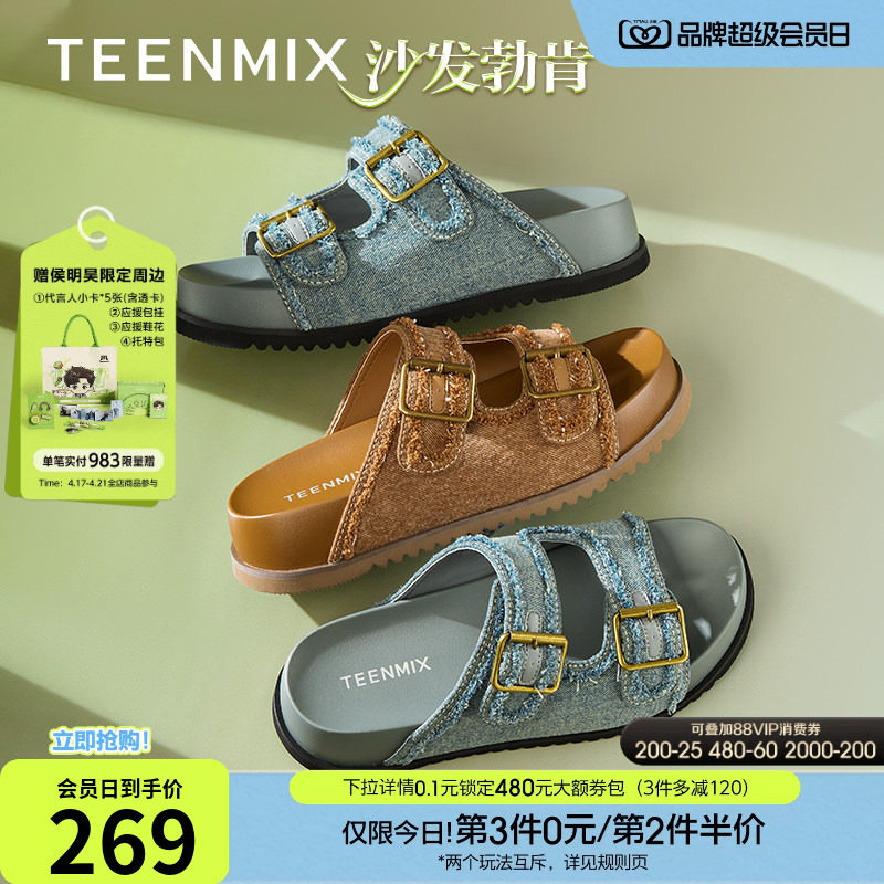 天美意复古厚底沙发勃肯半拖鞋女鞋子外穿凉拖休闲凉鞋夏季新款