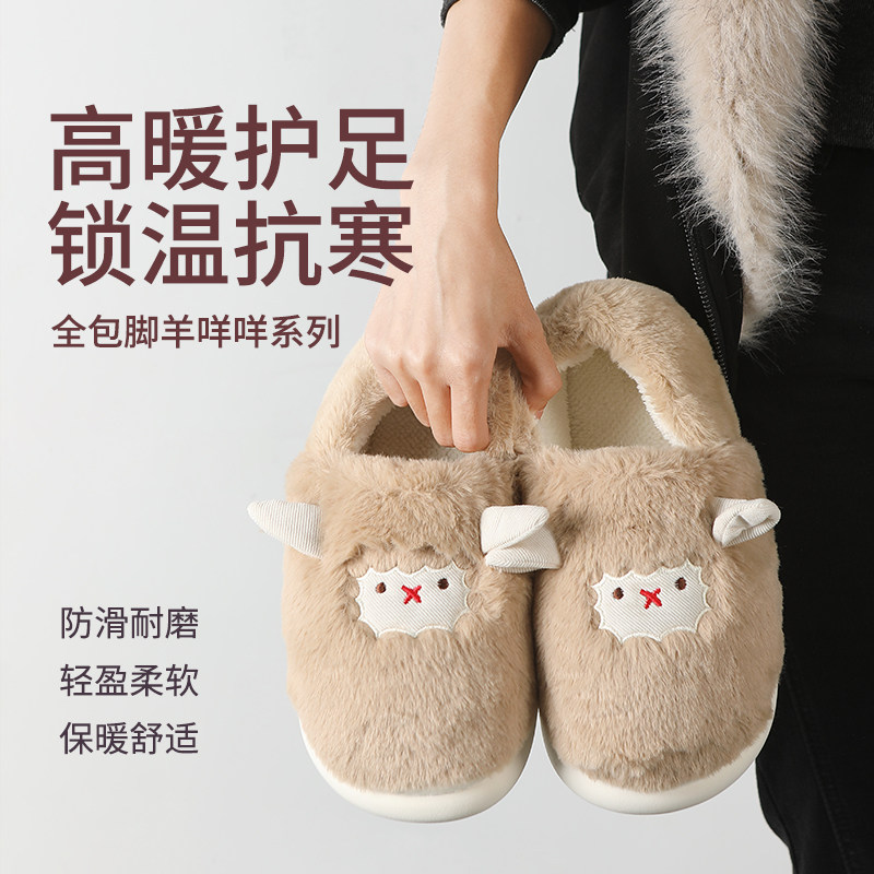 情侣可爱小绵羊棉拖鞋男女冬季居家包跟保暖防滑月子鞋ins