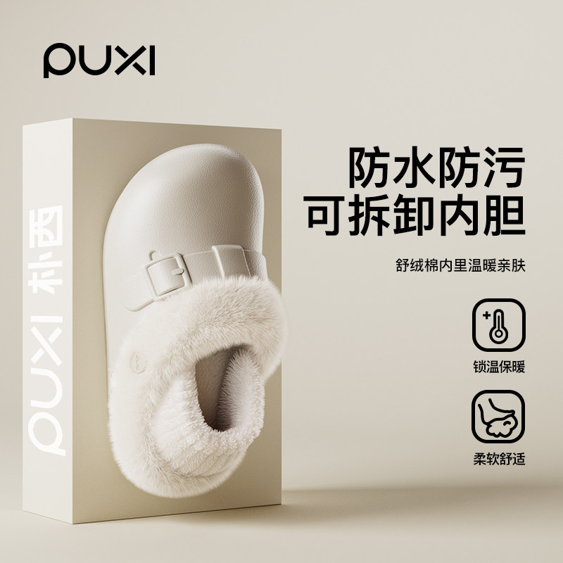 朴西可拆卸博肯防水棉拖鞋女冬季居家保暖防滑静音简约情侣棉拖男