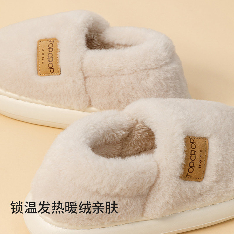 4.5CM加厚加绒情侣冬季厚底防滑毛绒包头美拉德色系居家棉拖鞋户
