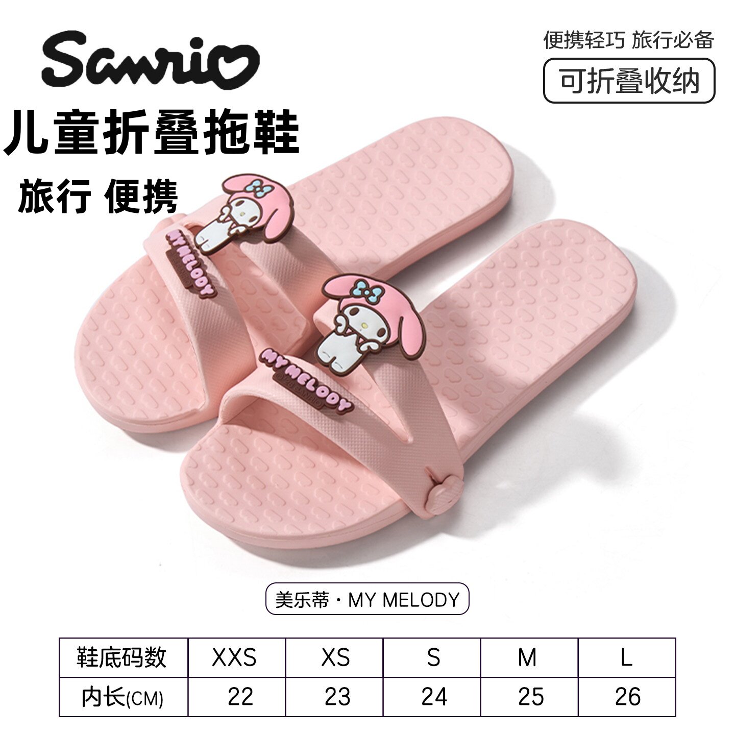 三丽鸥儿童折叠拖鞋便携式防滑防摔洗澡旅游酒店亲子旅行拖鞋女童