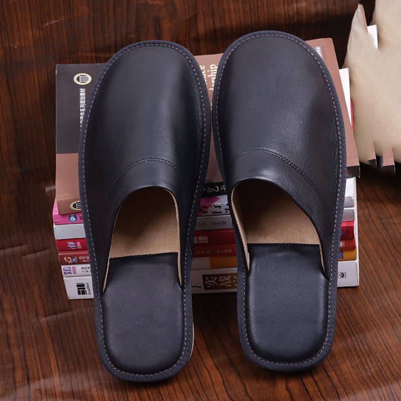 棉拖鞋女皮面防水情侣款秋冬季居家用保暖防滑加绒厚底皮拖鞋男士