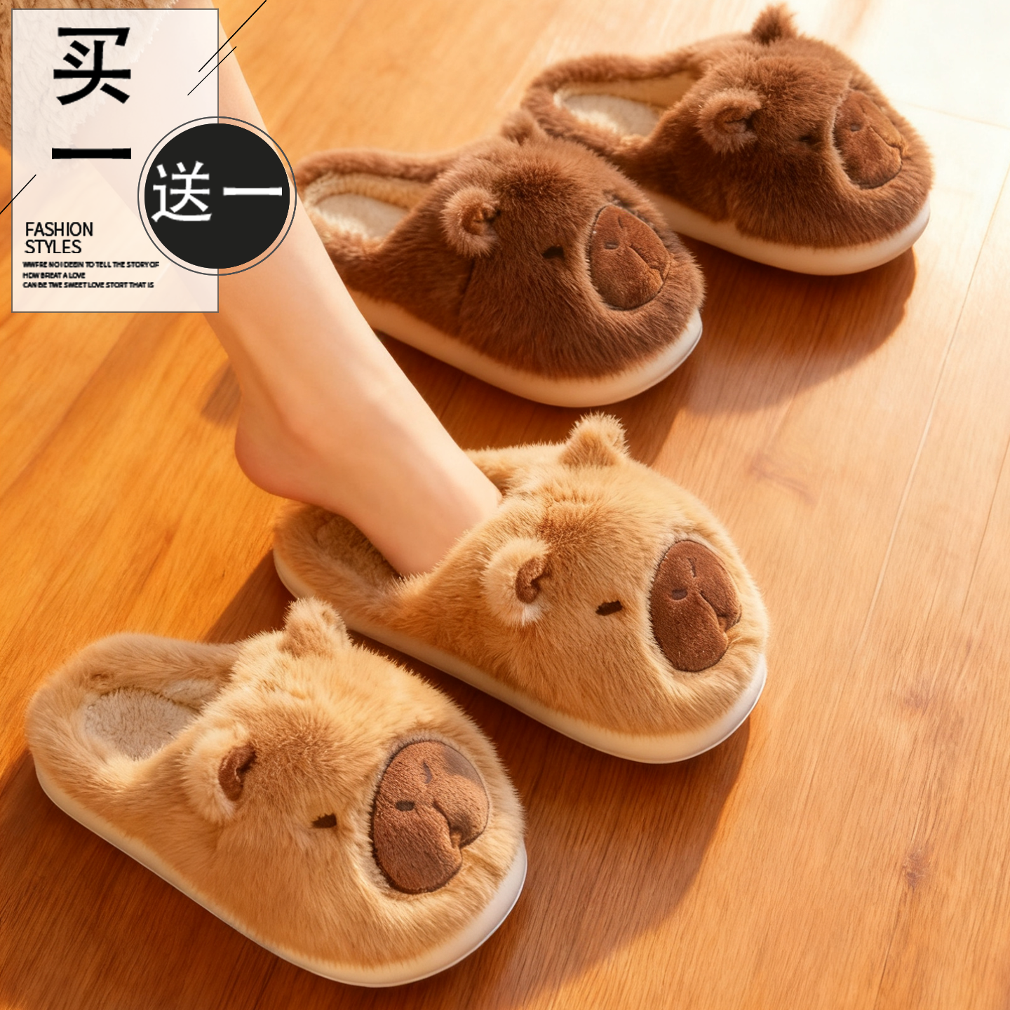 买一送一卡皮巴拉棉拖鞋女2025新款可爱情侣款室内家居保暖棉拖男