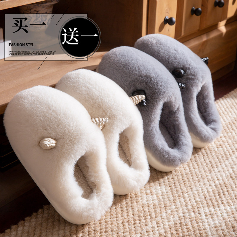 买一送一毛绒拖鞋女冬2025新款室内家居情侣家用防滑保暖棉拖鞋男