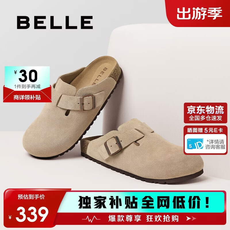 百丽休闲厚底增高3cm勃肯鞋男春夏包头半拖外穿拖鞋B3731 杏色 42