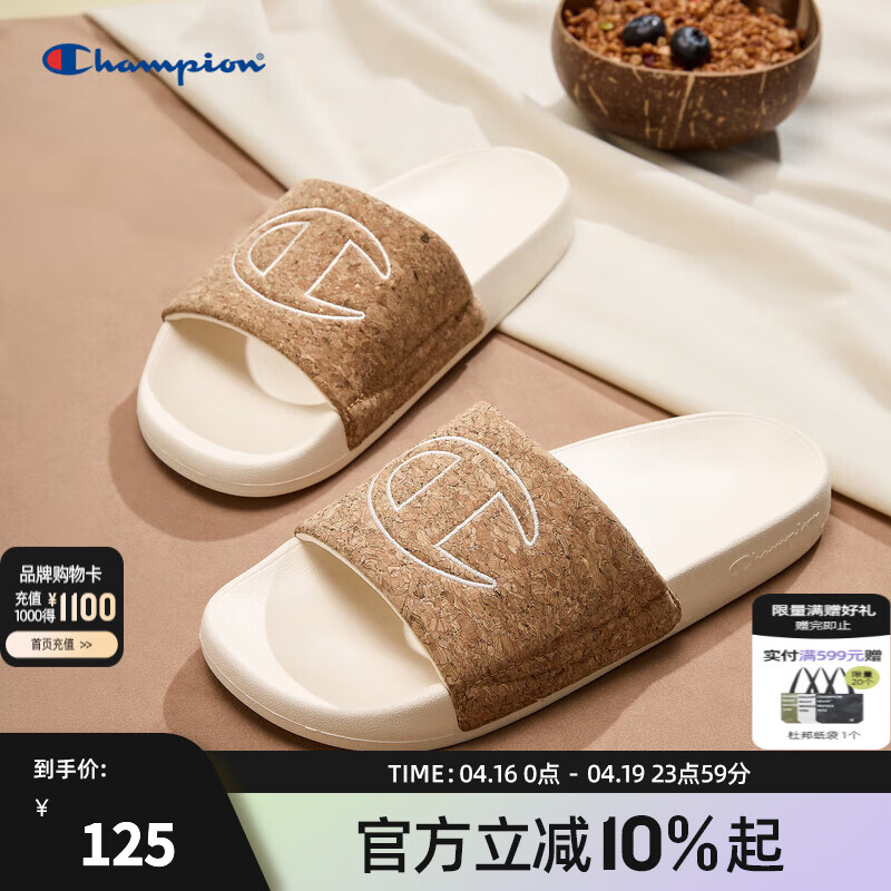 Champion冠军SlideC拖鞋24春夏季新款时尚一字拖沙滩鞋平跟男女 浅卡 44