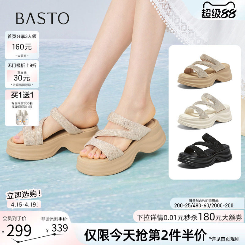 百思图2026夏季新款松糕厚底增高凉拖鞋休闲外穿女拖鞋BP579BT6