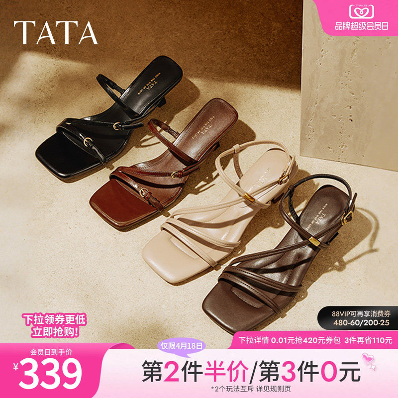 TATA他她小藤蔓气质高跟拖鞋女通勤法式一字带休闲凉鞋夏7UJA9BT5