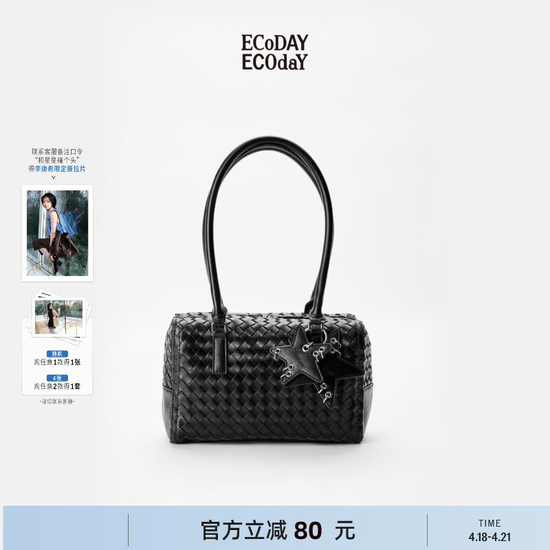 ECODAY编织包公文包单肩手提腋下包波士顿包送女友生日礼物 黑色