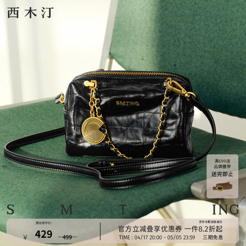 西木汀 软糖泡泡 头层牛皮包新款女链条包手提包女小个子女包 深邃黑