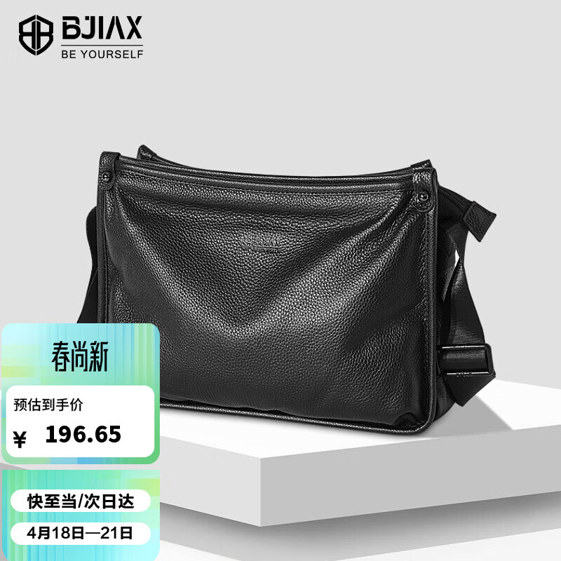宝加西(BJIAX)真皮单肩斜挎包牛皮包斜跨商务休闲男士包通勤单肩挎包父亲送礼物