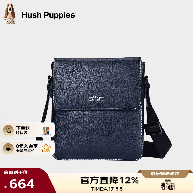 暇步士(Hush Puppies)单肩包男士翻盖真皮包包商务斜挎包新款时尚户外上班通勤背包 蓝色HA-1311386W-5510