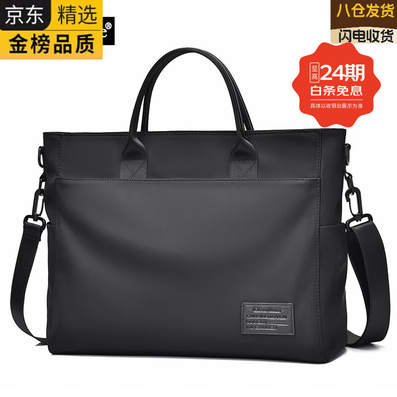 诗迦努2025新款防水耐磨手提包公文包 韩版男包休闲时尚单肩包斜挎包潮 黑色 .