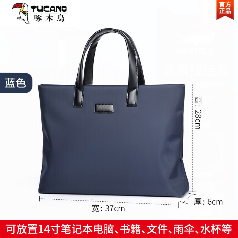 啄木鸟(TUCANO)文件袋电脑包公文包帆布包a4手提袋资料袋商务拉链多层男办公 蓝色 中包 15英寸