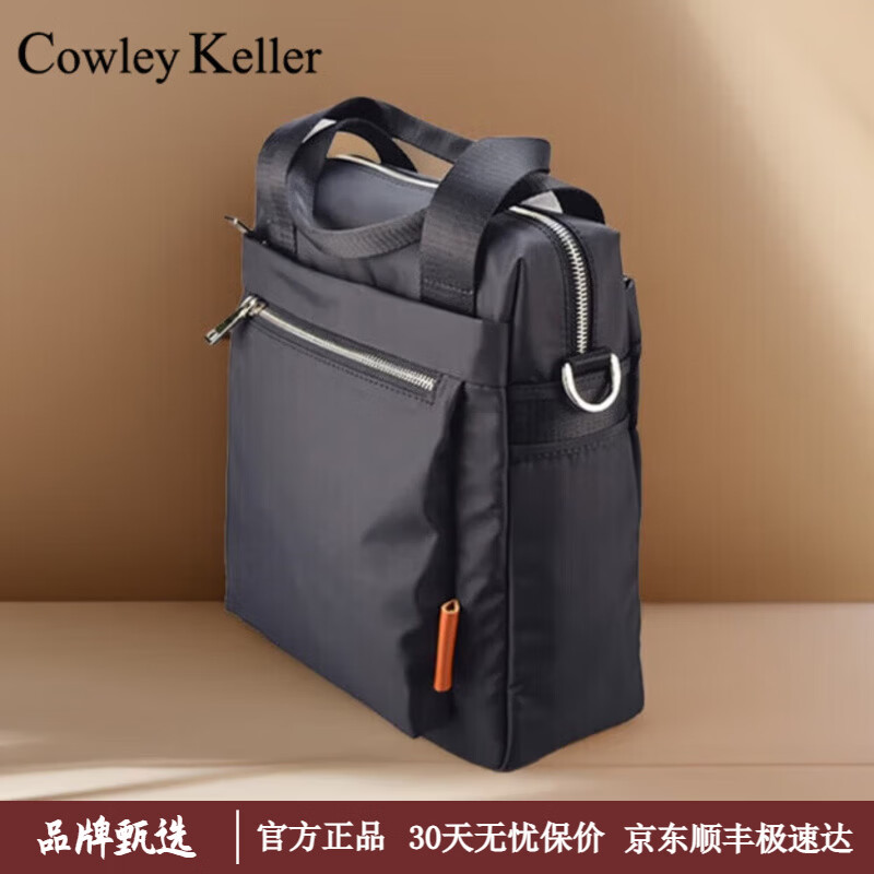 COWLEY KELLER商务公文包男士手提包大容量防泼水尼龙布电脑包通勤包单肩斜挎包 黑色【12英寸电脑】 29.5*11*31cm