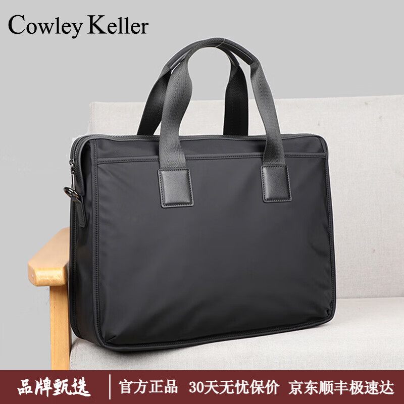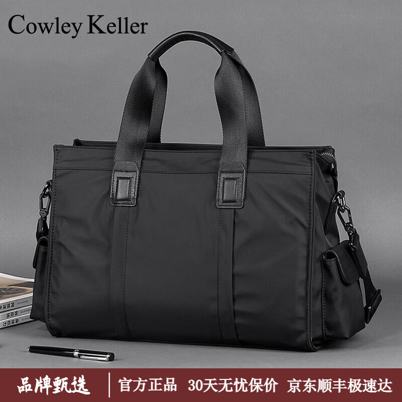 COWLEY KELLER公文包男士手提包商务大容量电脑包防泼水尼龙布律师包单肩斜挎包 黑色 38*9*28cm 14英寸