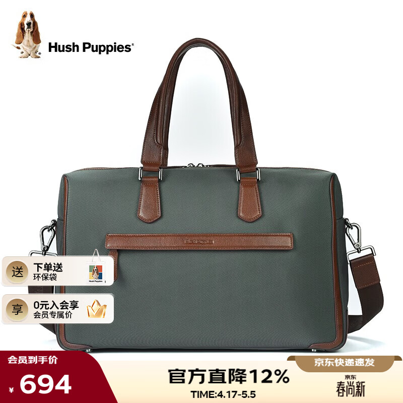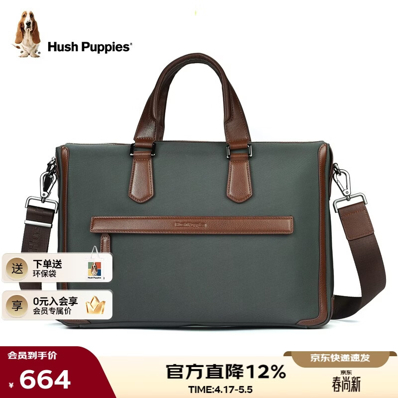 暇步士(Hush Puppies)男士公文包真皮复古时尚单肩斜挎包大容量文件包尼龙布手提电脑包 HA-1211675W-541 绿色