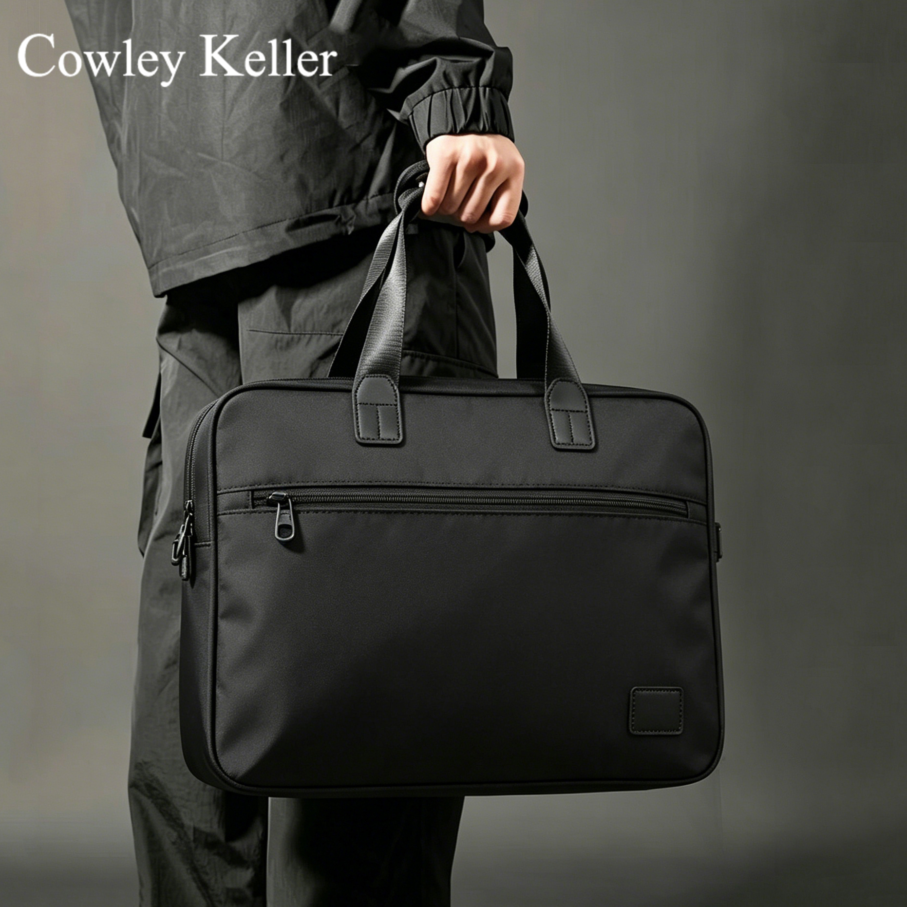 COWLEY KELLER男士手提包帆布公文包大容量商务通勤文件电脑包防泼水斜挎包背包 黑色(可放15.6英寸电脑) 40*10*30cm