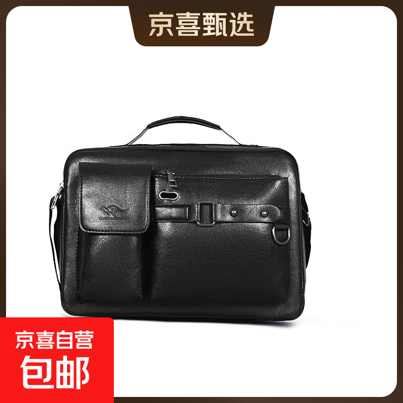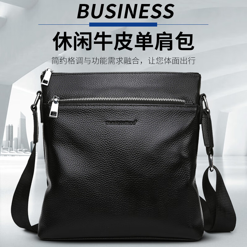 商务男士单肩包牛皮革公文包简约通勤电脑包斜挎包多功能手提包包 黑色