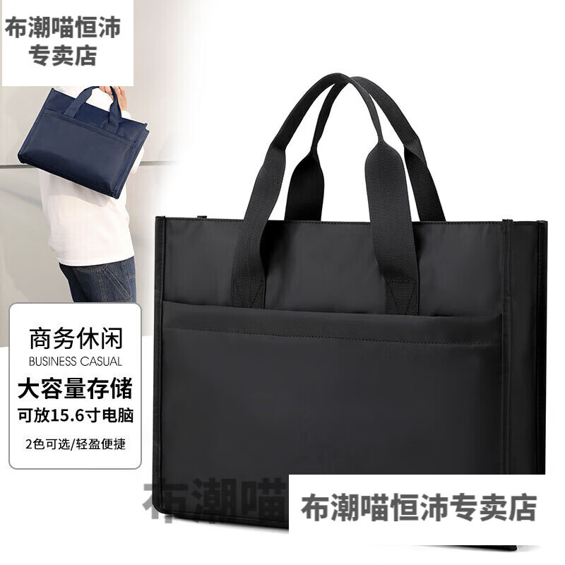 牛津布公文包 公务包防水尼龙布包男士公文包商务办公休闲手提包电脑包4文件包多夹层 黑色 可以放文件夹