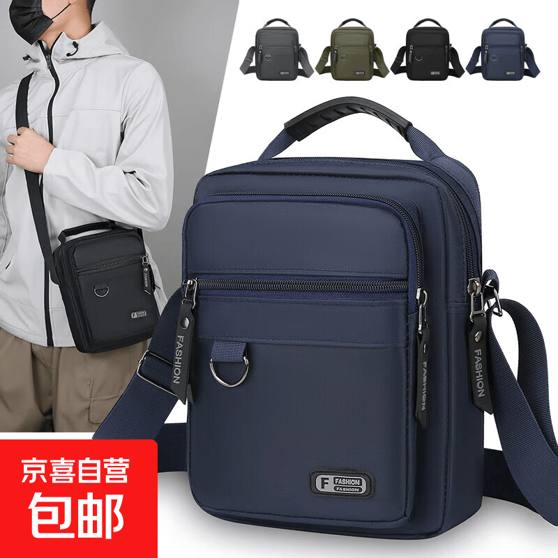 户外防水牛津布单肩斜挎包男士新款休闲多层便携商务包 深蓝色