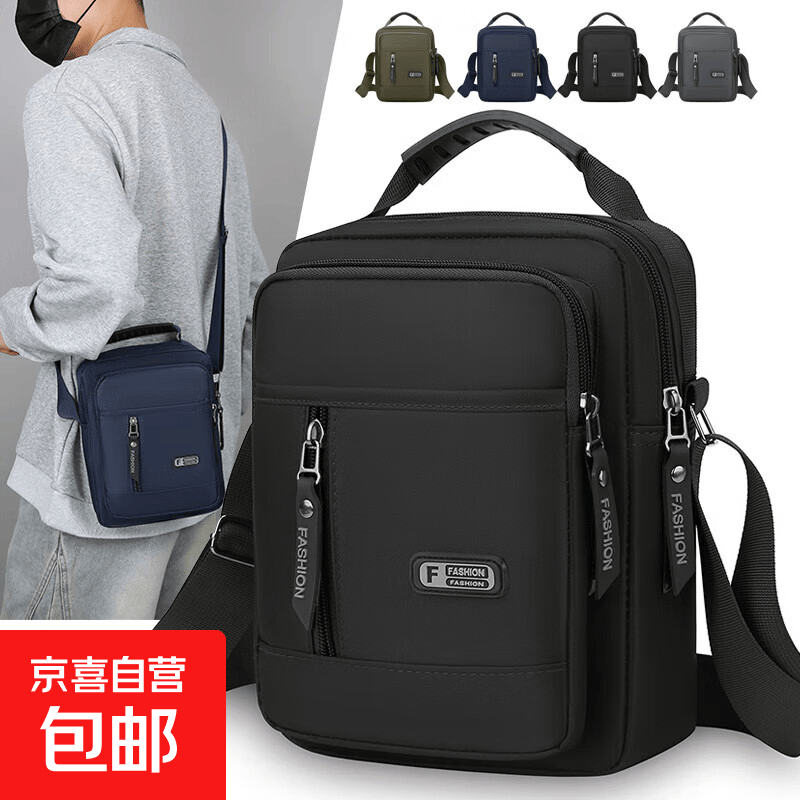 韩版男士大容量单肩斜挎包牛津布商务小手提公文包休闲运动旅行包 黑色