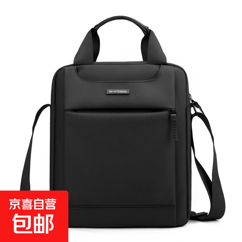 新款男士休闲单肩包斜挎包多功能手提包简约大容量商务包 黑色