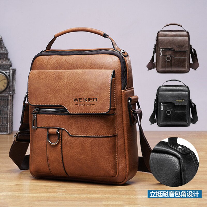 极速斜挎包 男士单肩包复古皮革竖款手提商务男式W休闲皮包斜挂包