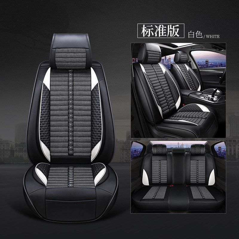 新款汽车坐垫透气亚麻全包围座垫皮包边轿车suv四季座套车椅垫子