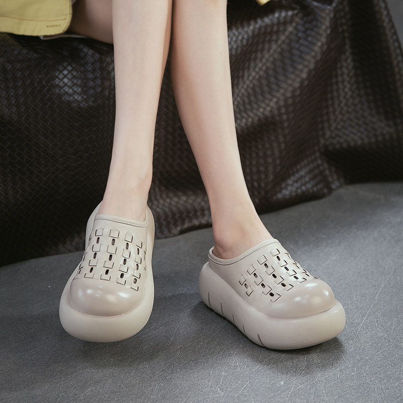 真皮包头拖鞋女2026夏新款真皮编织百搭凉拖鞋厚底洞洞外穿半拖鞋