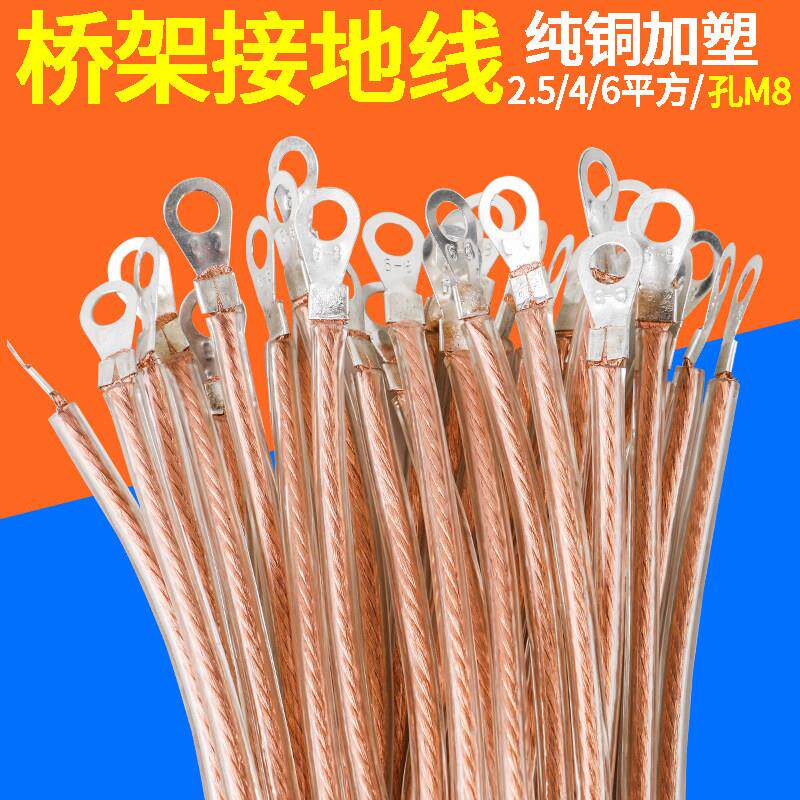 TJRX加塑桥架接地线纯铜带皮包塑过门跨接线铜绞线2.5/4/6平方孔8