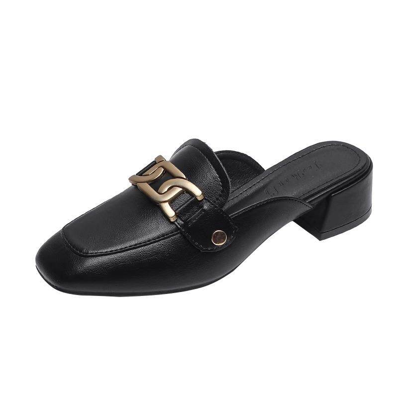 潮牌真皮包头拖鞋女2025春秋高跟外穿凉拖软底舒适乐福半托小皮鞋