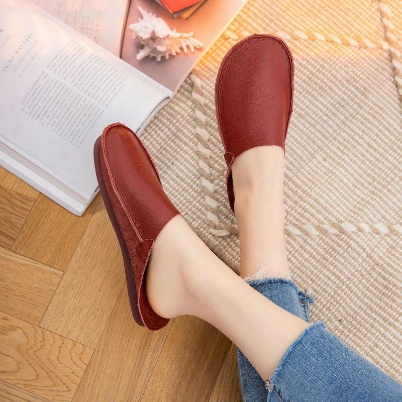 真皮包头半拖鞋女外穿2025夏季复古中跟粗跟凉拖软皮中年妈妈凉鞋