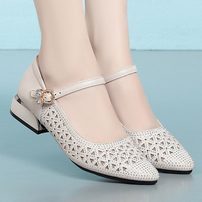 真皮包头凉鞋女款2024新款夏季后空单鞋粗跟软底中年妈妈女士皮鞋