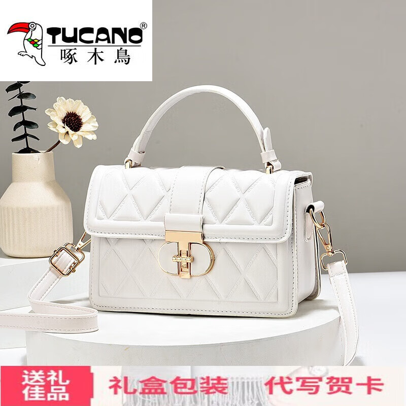 啄木鸟(TUCANO)小香风真皮包包女包明星同款手提小方包百搭单肩斜挎女包生日礼物 专柜品牌礼盒装】米白
