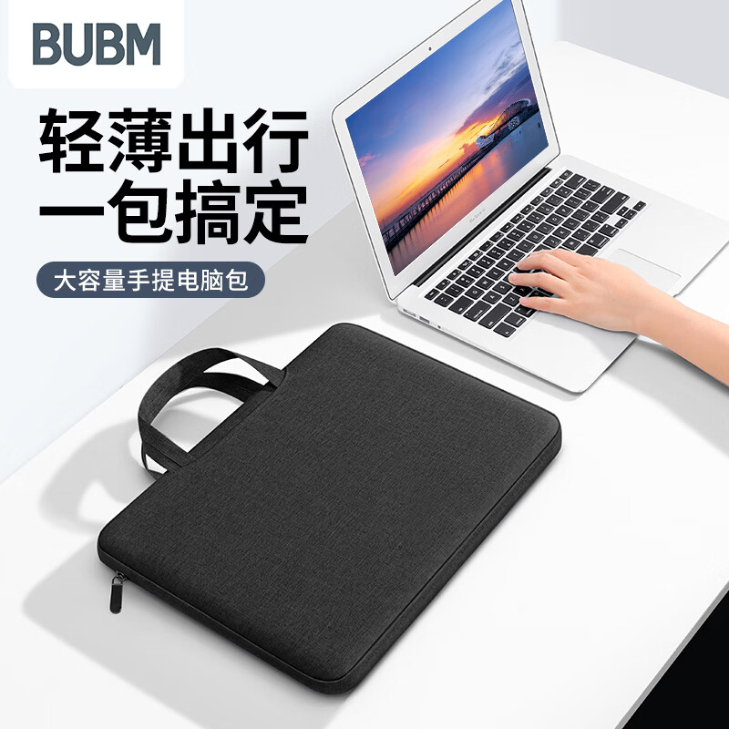 必优美笔记本电脑包手提14英寸男适苹果MacBook华为商务出差电脑公文包