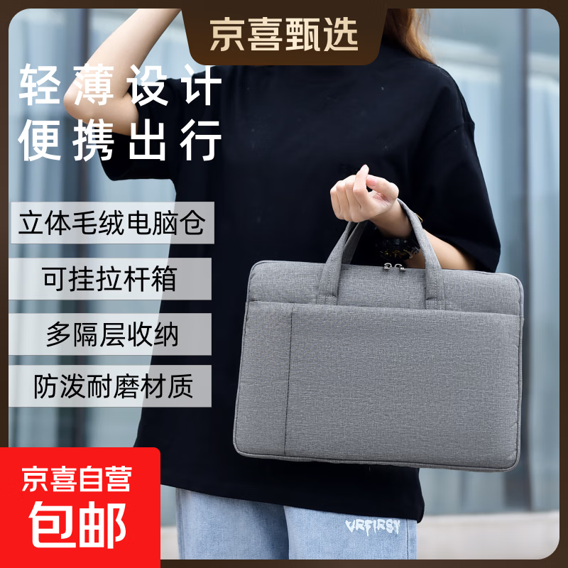 新款笔记本电脑包适用惠普华为联想苹果手提公文包男女商务 大号灰色