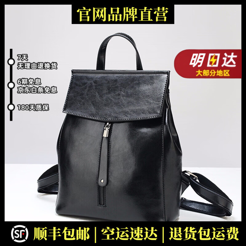 TNNSIR轻奢品牌真皮包包女包复古双肩包油蜡牛皮背包潮书包 黑色
