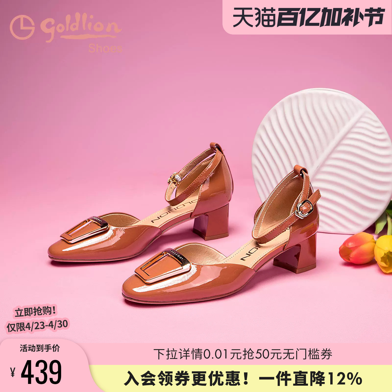 金利来中空单鞋女2025夏季新款女鞋时尚百搭通勤真皮包头粗跟凉鞋