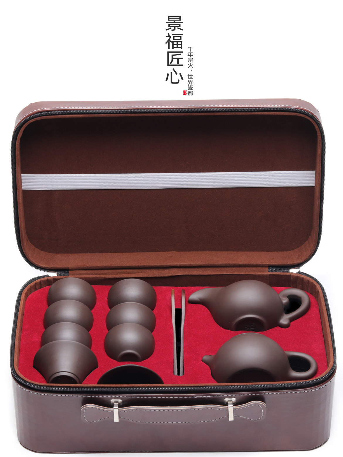 景福匠心西施壶紫砂功夫茶具整套家用旅行装皮包茶盘茶壶定制刻字