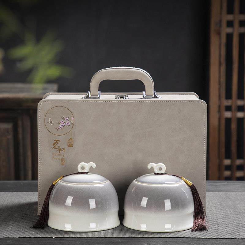 高档皮包茶叶礼盒装空盒白茶绿茶龙井包装盒通用陶瓷茶叶罐半斤装