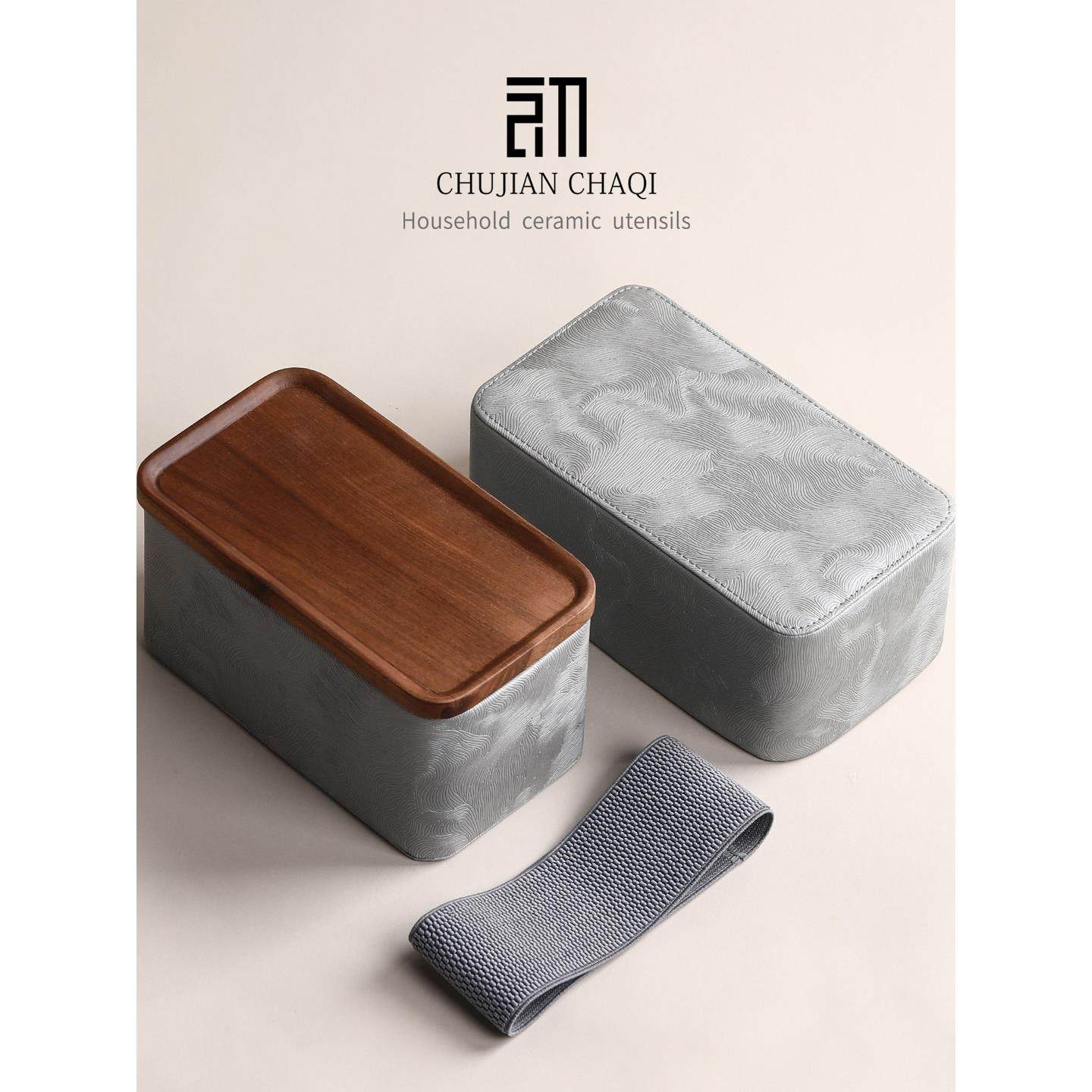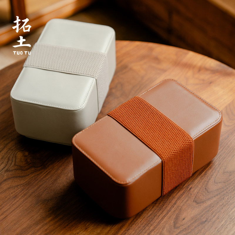拓土新款旅行茶具双格收纳包小号户外出行可携式茶具收纳盒小皮包