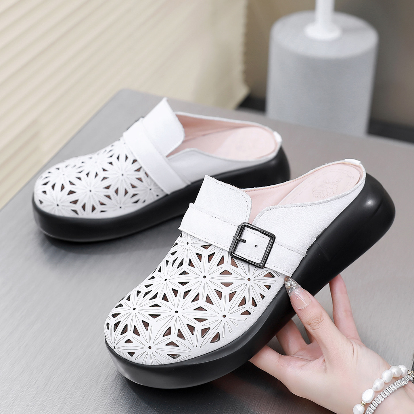 真皮包头拖鞋女外穿厚度半拖镂空洞洞鞋平底皮拖女士防滑凉拖百搭