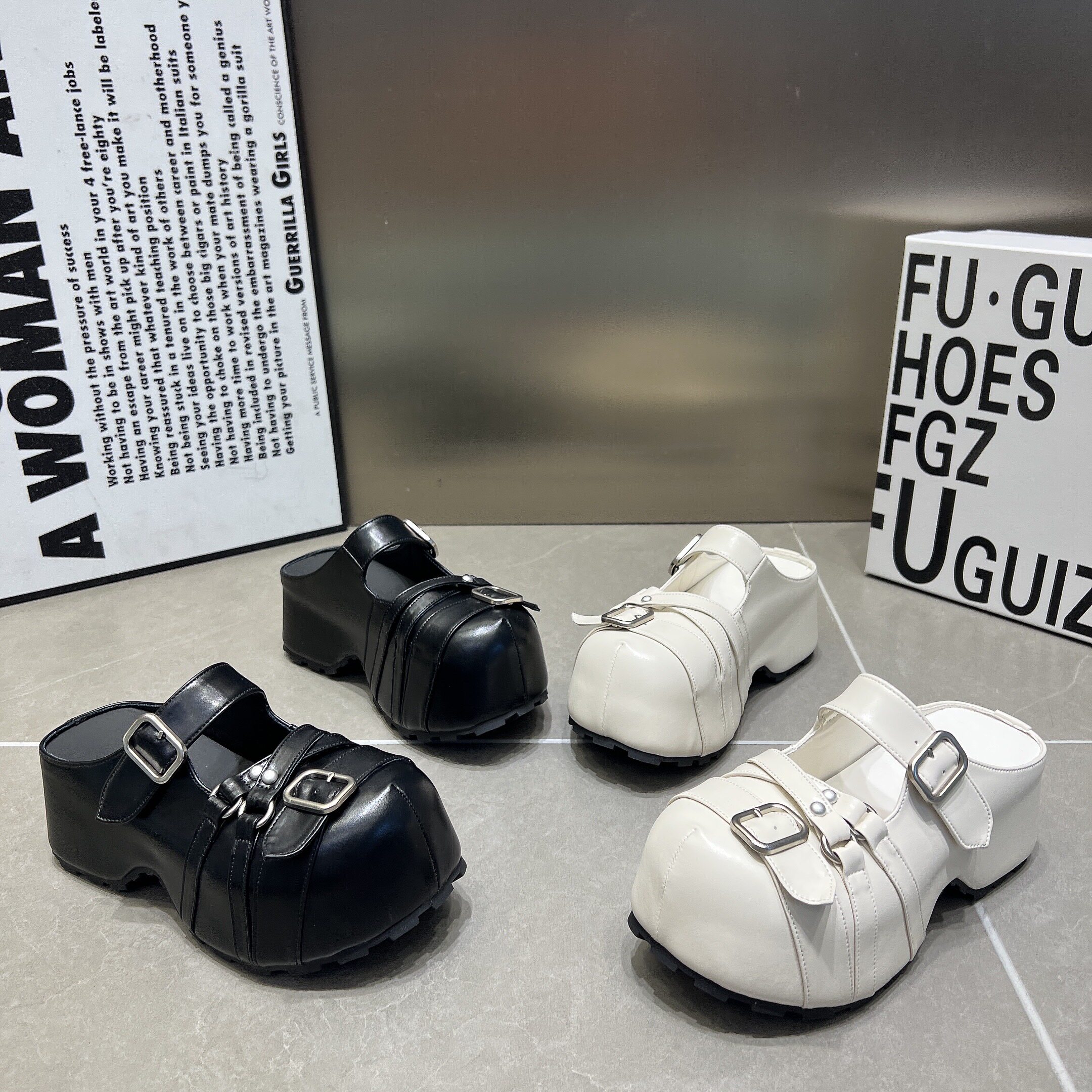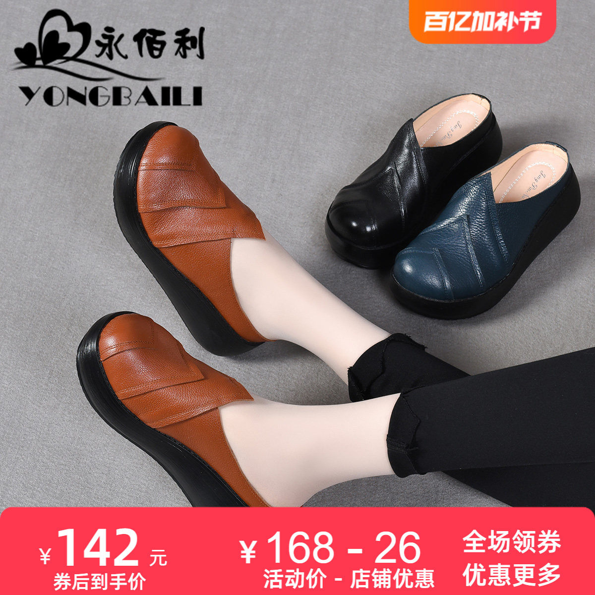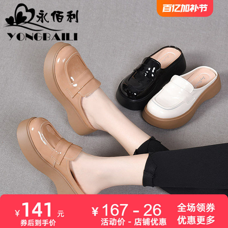 6cm厚底内增高真皮包头半拖鞋女2026新款皮带扣懒人休闲勃肯鞋女