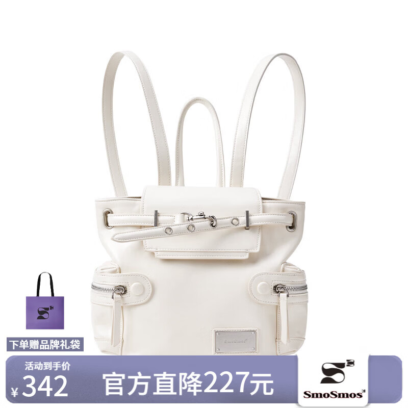 SmoSmos【千禧扣带】原创小众登山包小背包牛皮包通勤双肩包礼物生日礼物 伪装白