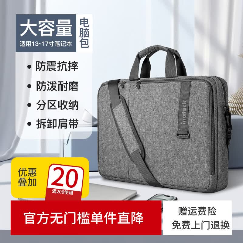 inateck笔记本电脑包手提包公文包适用华为戴尔联想惠普华硕17.3寸游戏本 【标准款】灰色 15.6英寸【适配15-17.3寸电脑】