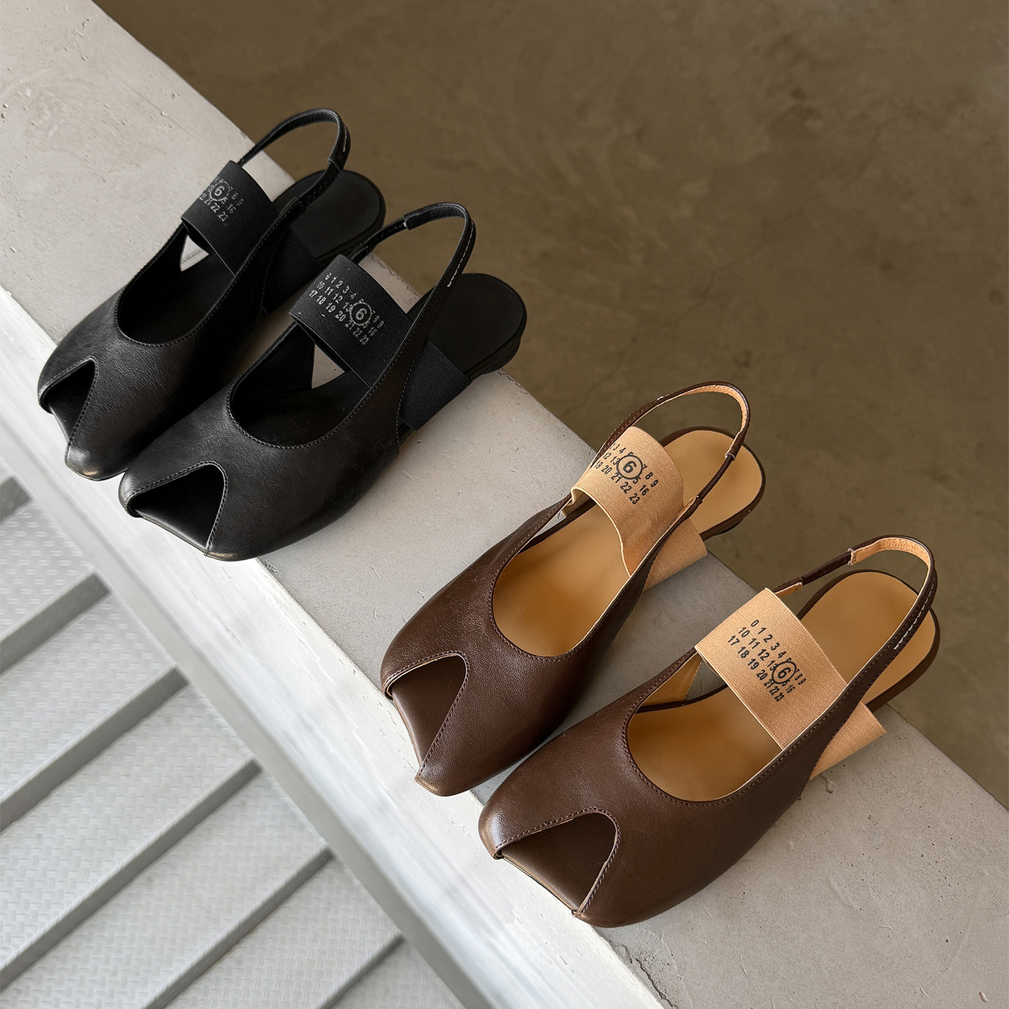 圆圆妈2026夏季新款真皮包头凉鞋松紧带低跟后空里外全皮鱼嘴女鞋